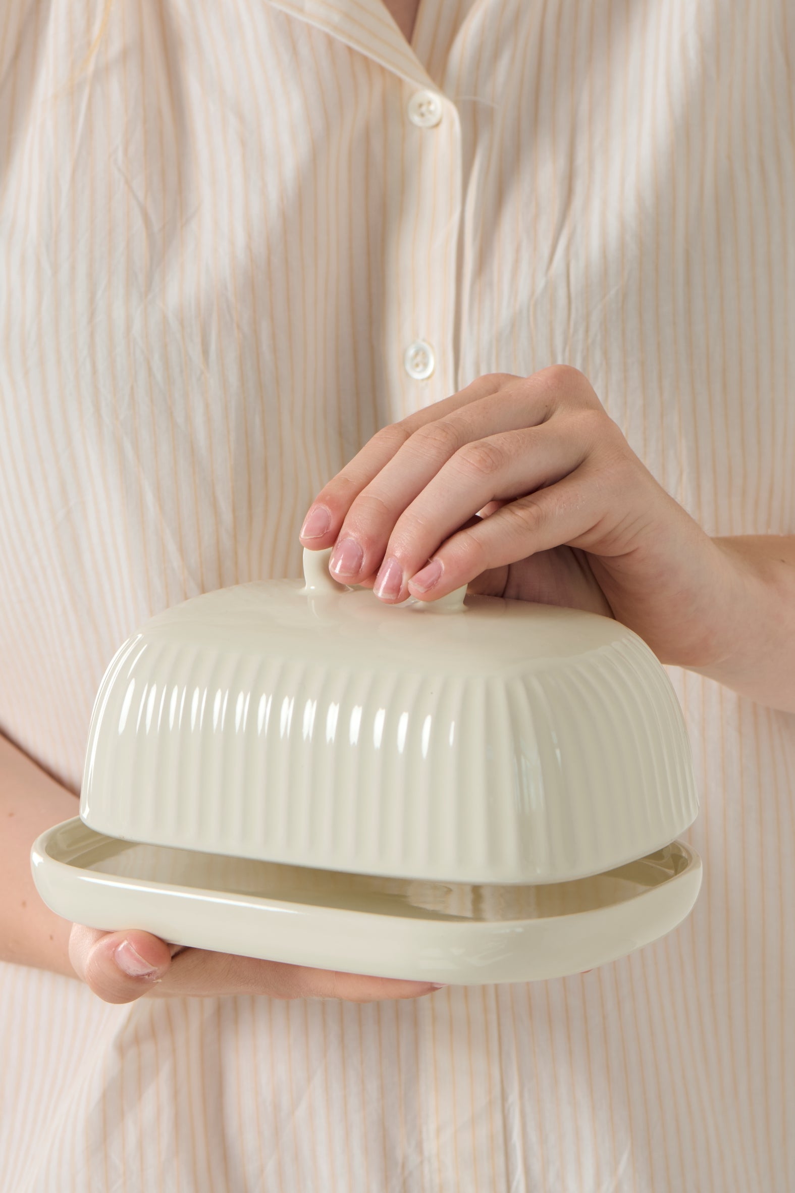 Die Butterdose Butter Cream ist schlicht und zeitlos. Sie passt einfach in jeden Haushalt. Darin bewahrst du deine Butter sicher auf und präsentierst sie stilvoll auf dem Tisch.